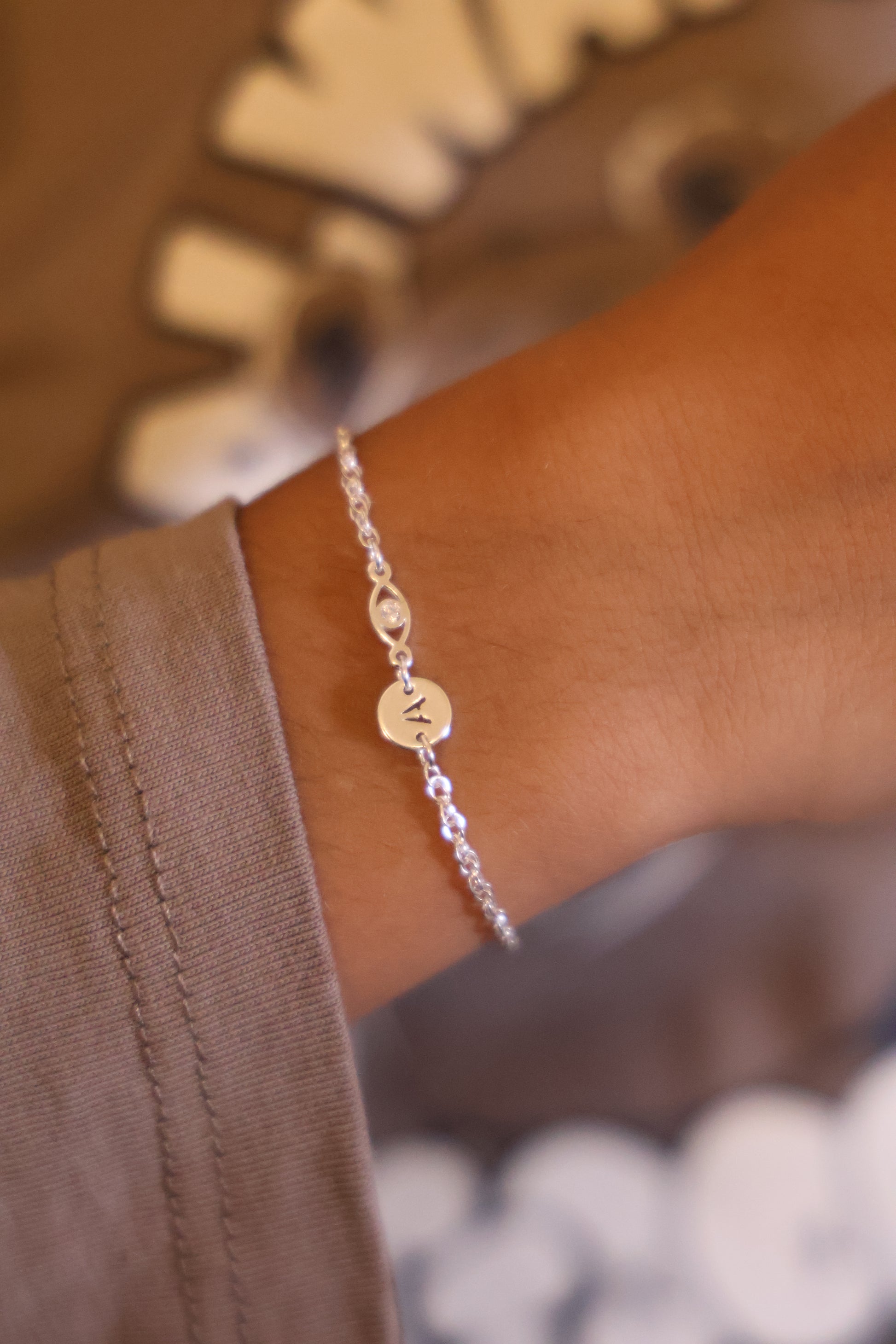 Personalisierte Kinder Armkette mit Buchstabe und Nazar Auge