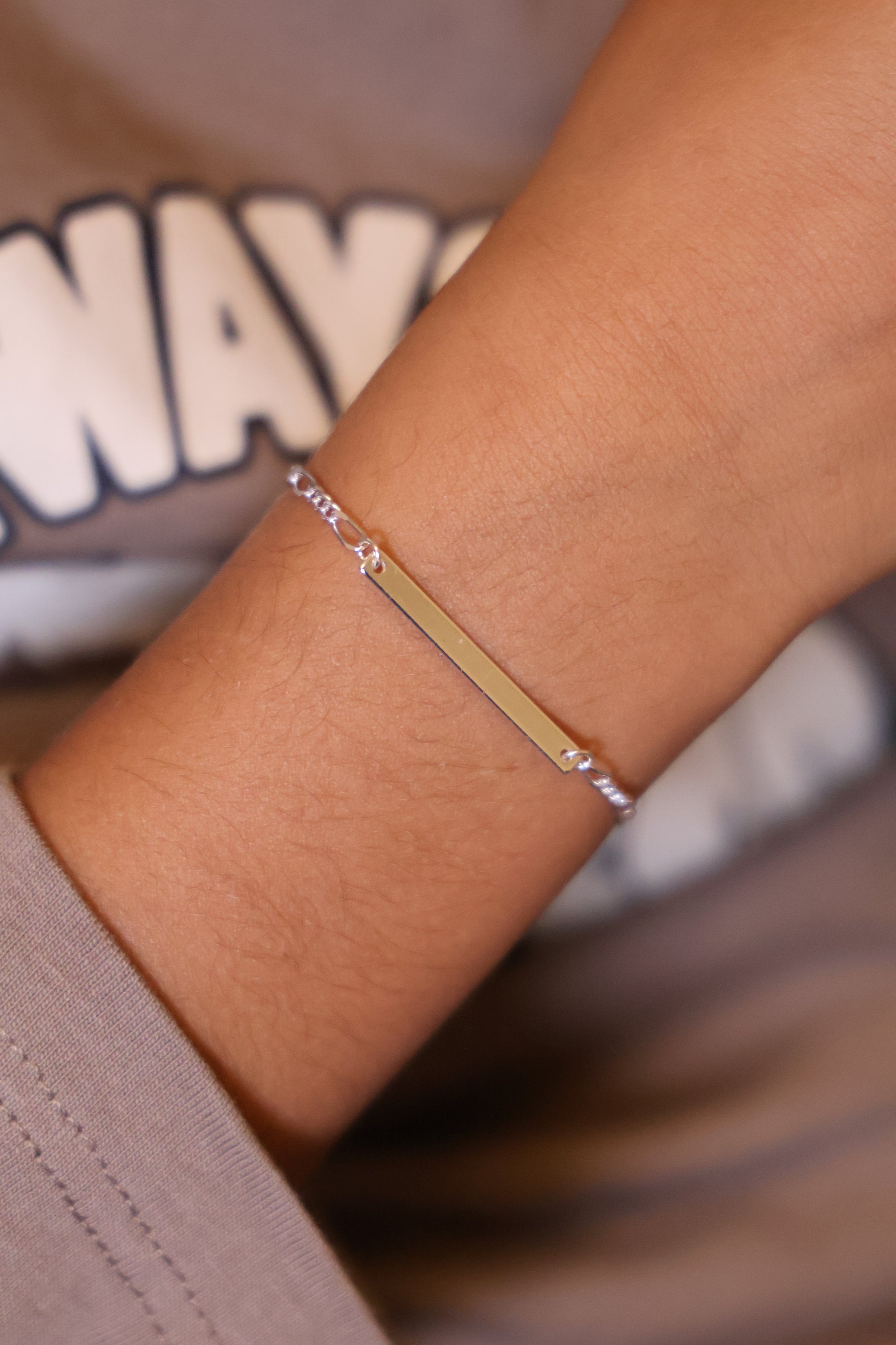 Eine zarte und individuell gestaltbare Kinder Armkette – perfekt für Babys, Kleinkinder und Kinder. Die feine Gravur-Platte bietet Platz für einen Namen, ein Datum oder ein liebevolles Wort, das dem Schmuckstück eine persönliche Bedeutung verleiht.