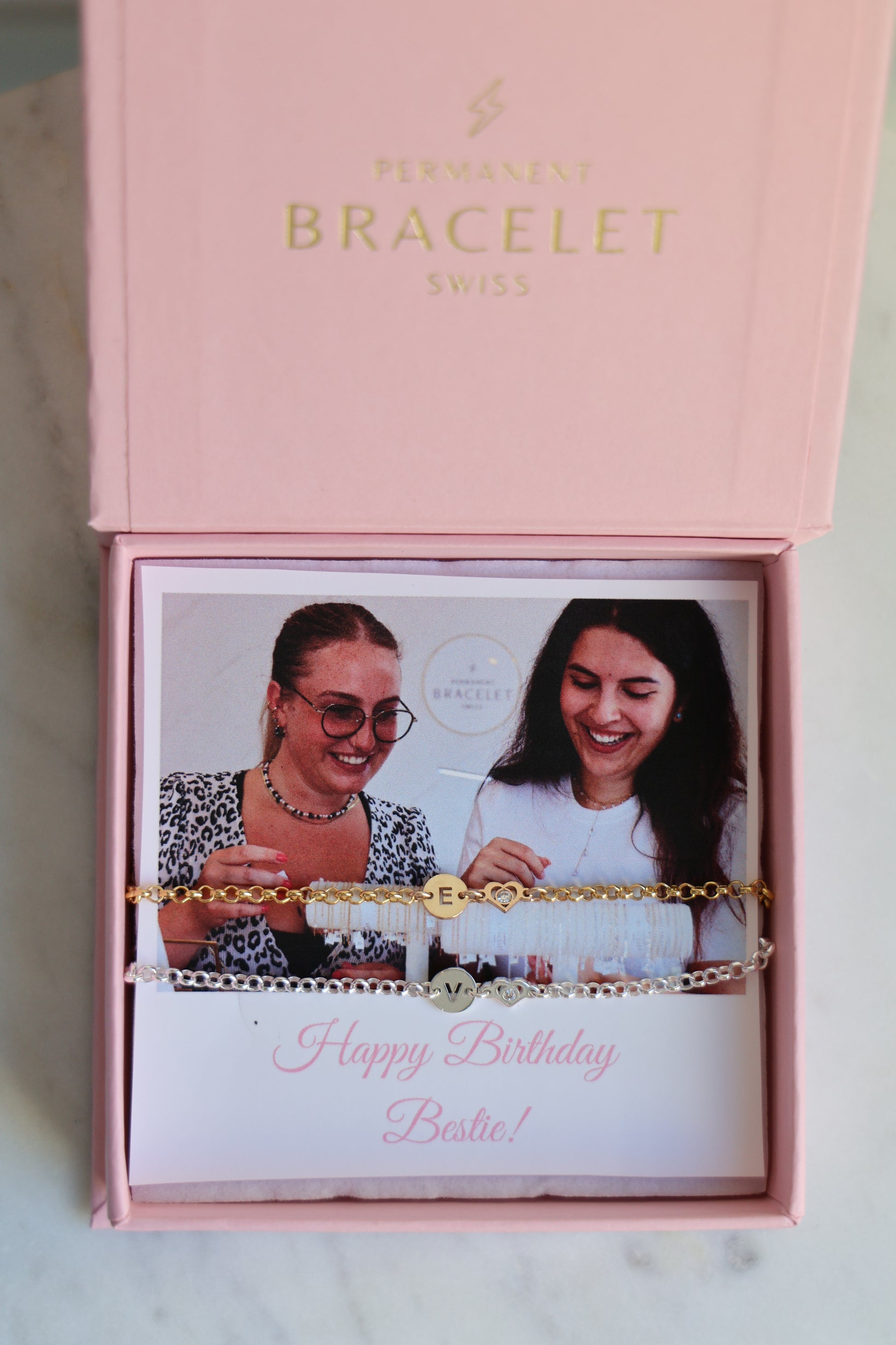 Unser exklusives Bracelet Set besteht aus zwei feinen Armbändern, die durch zarte runde Verbinder mit Initialen personalisiert werden können. Jedes Set wird mit Liebe handgefertigt und steht für Verbindung, Zuneigung und gemeinsame Erinnerungen – ob zwischen Freundinnen, Geschwistern, Eltern und Kindern oder Partnern.