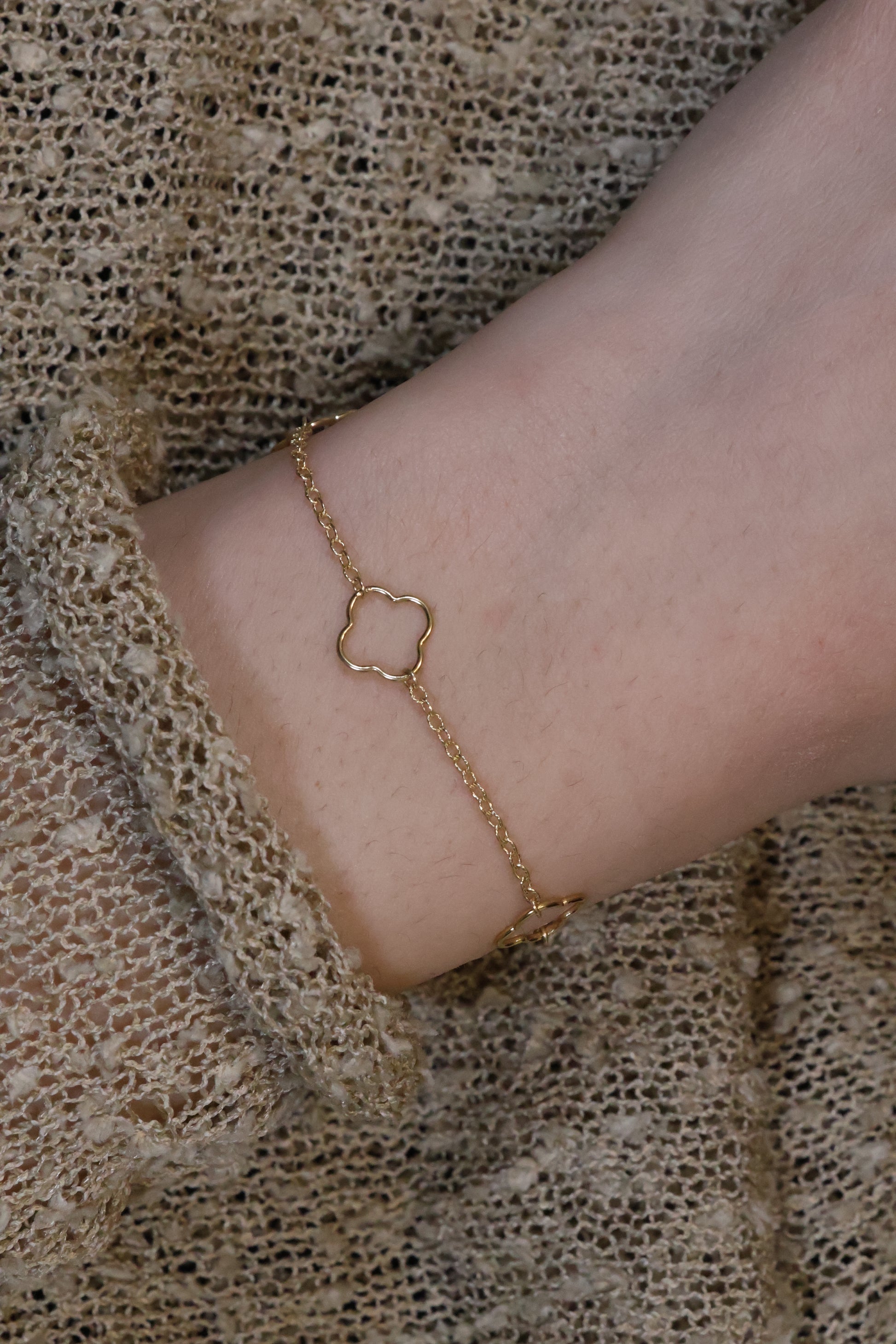 Zarte Armkette mit fünf gleichmässig angeordneten Blumen-Elementen – ein Symbol für Harmonie, Leichtigkeit und natürliche Schönheit.