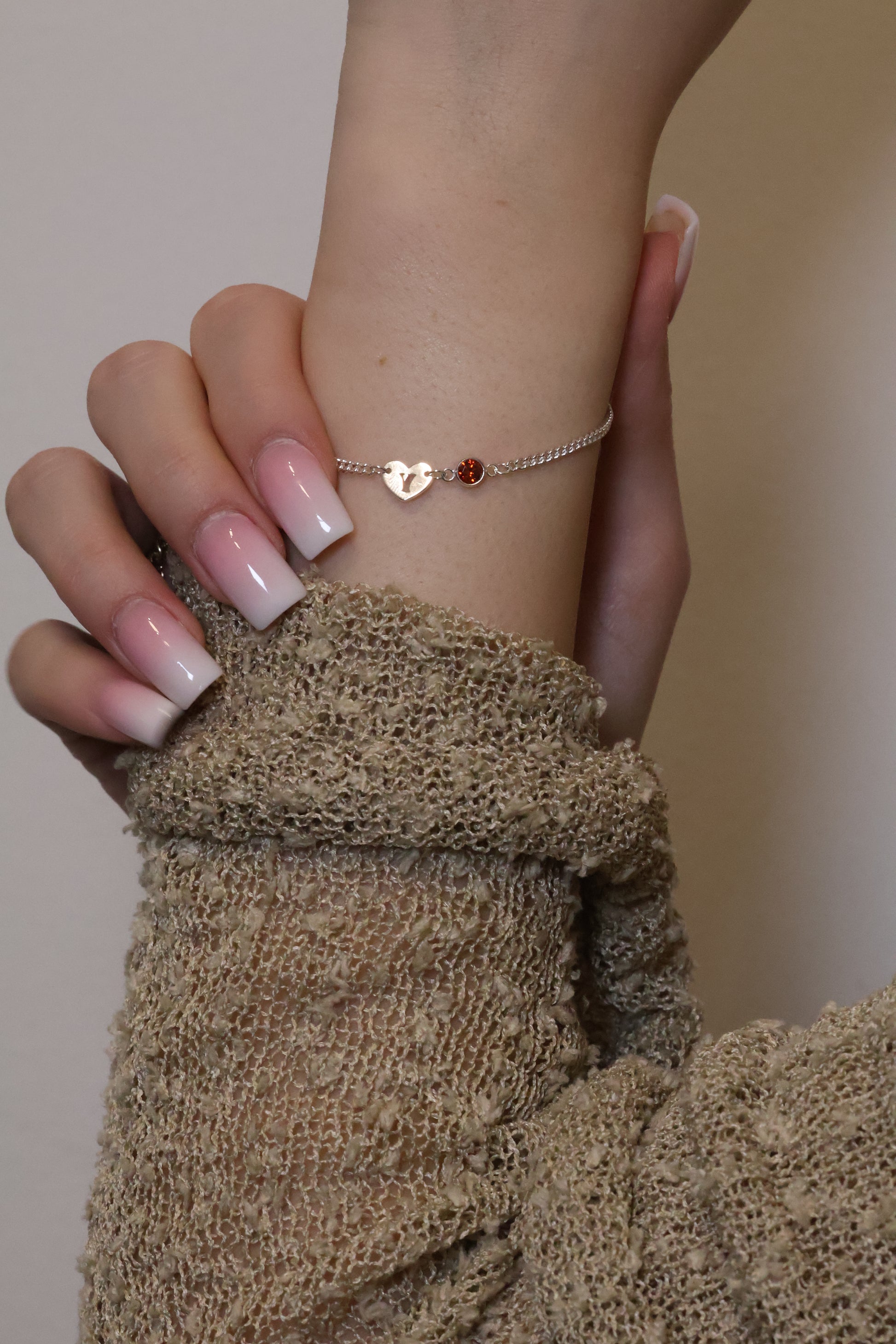 Personalisierte Armkette mit Herz Buchstaben und Monatsstein Verbinder