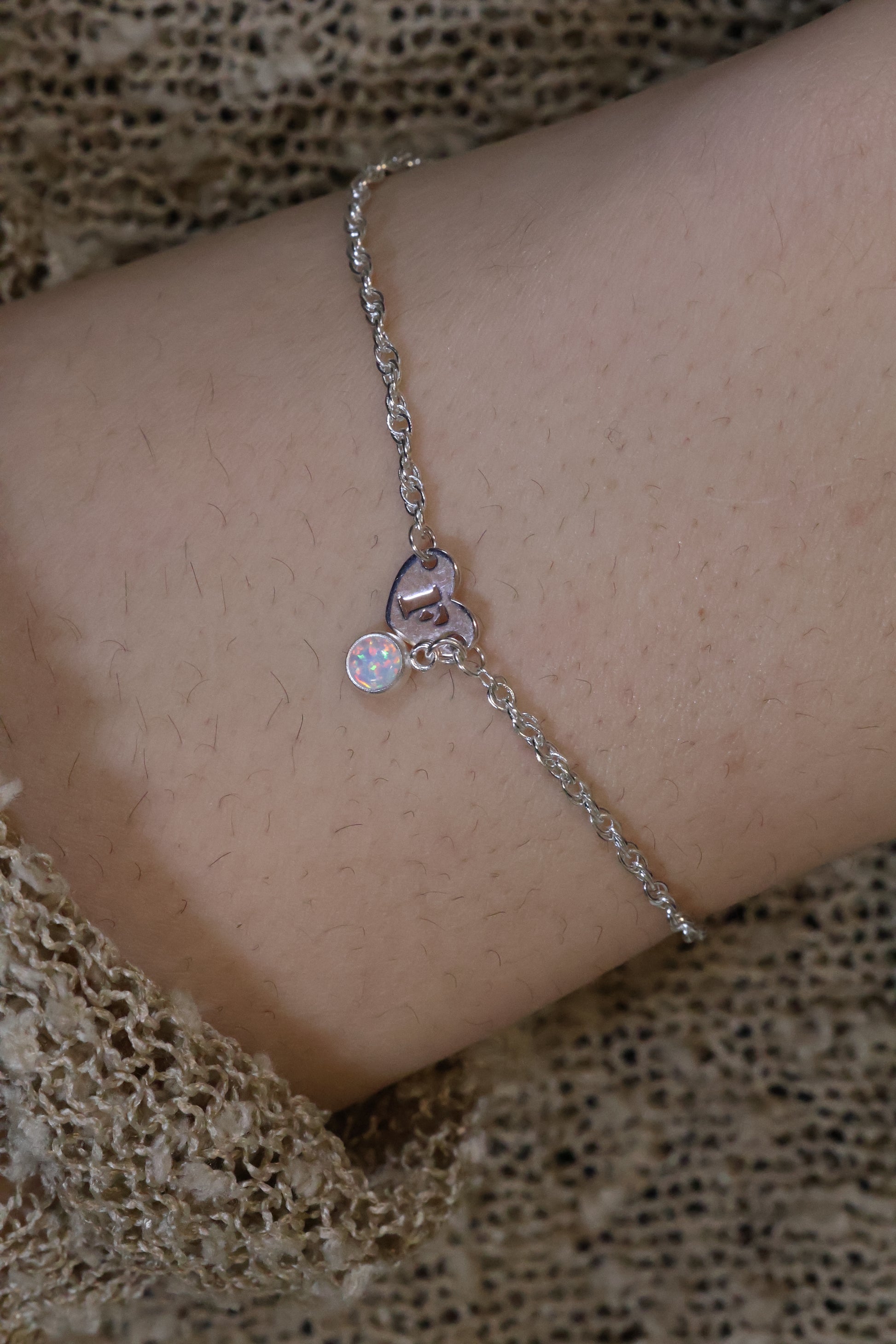 • Personalisierte Armkette mit Herz Buchstaben Verbinder und Monatsstein Anhänger
