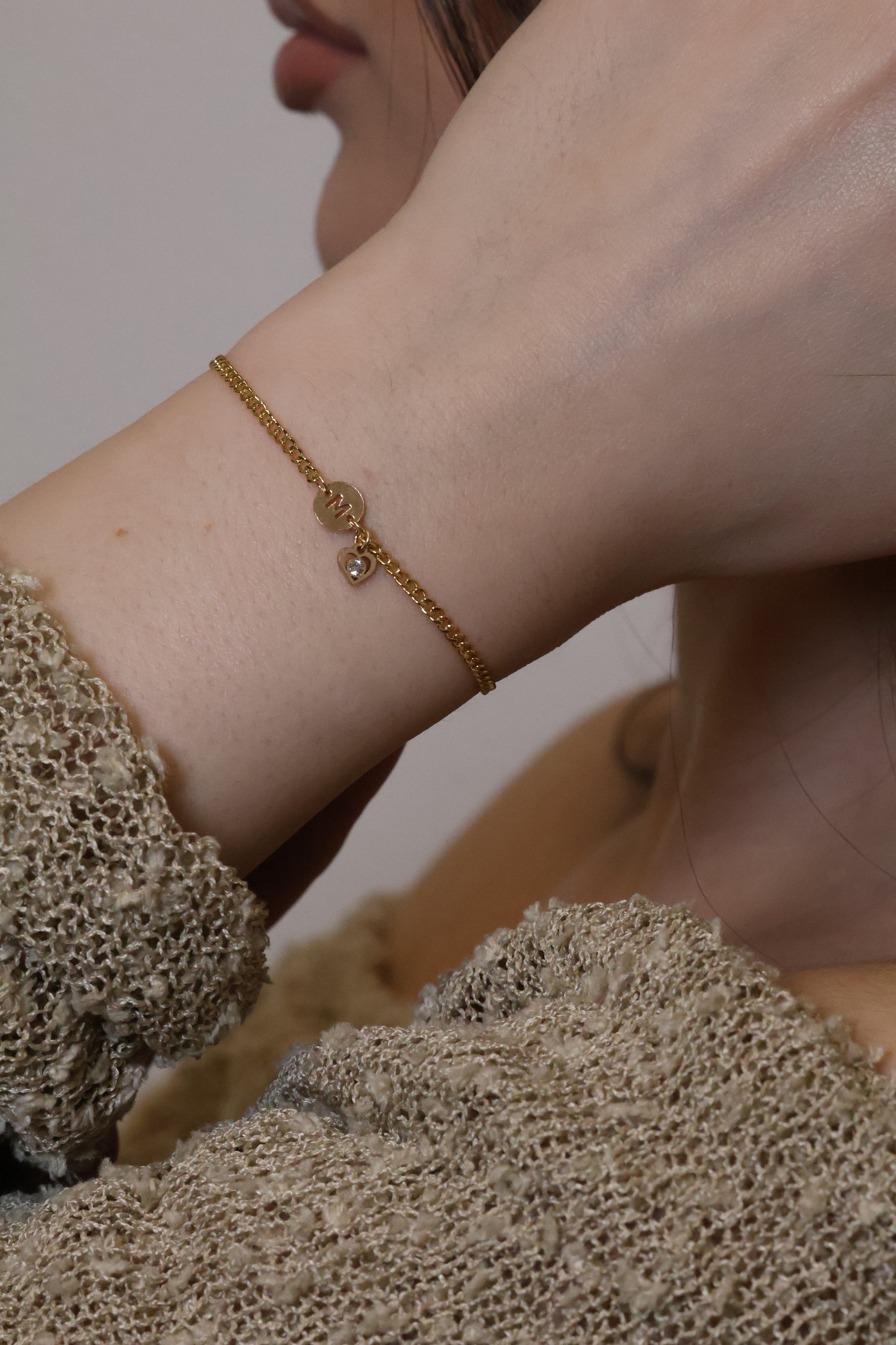 Personalisierte Armkette mit rundem Buchstaben & Herz-Anhänger