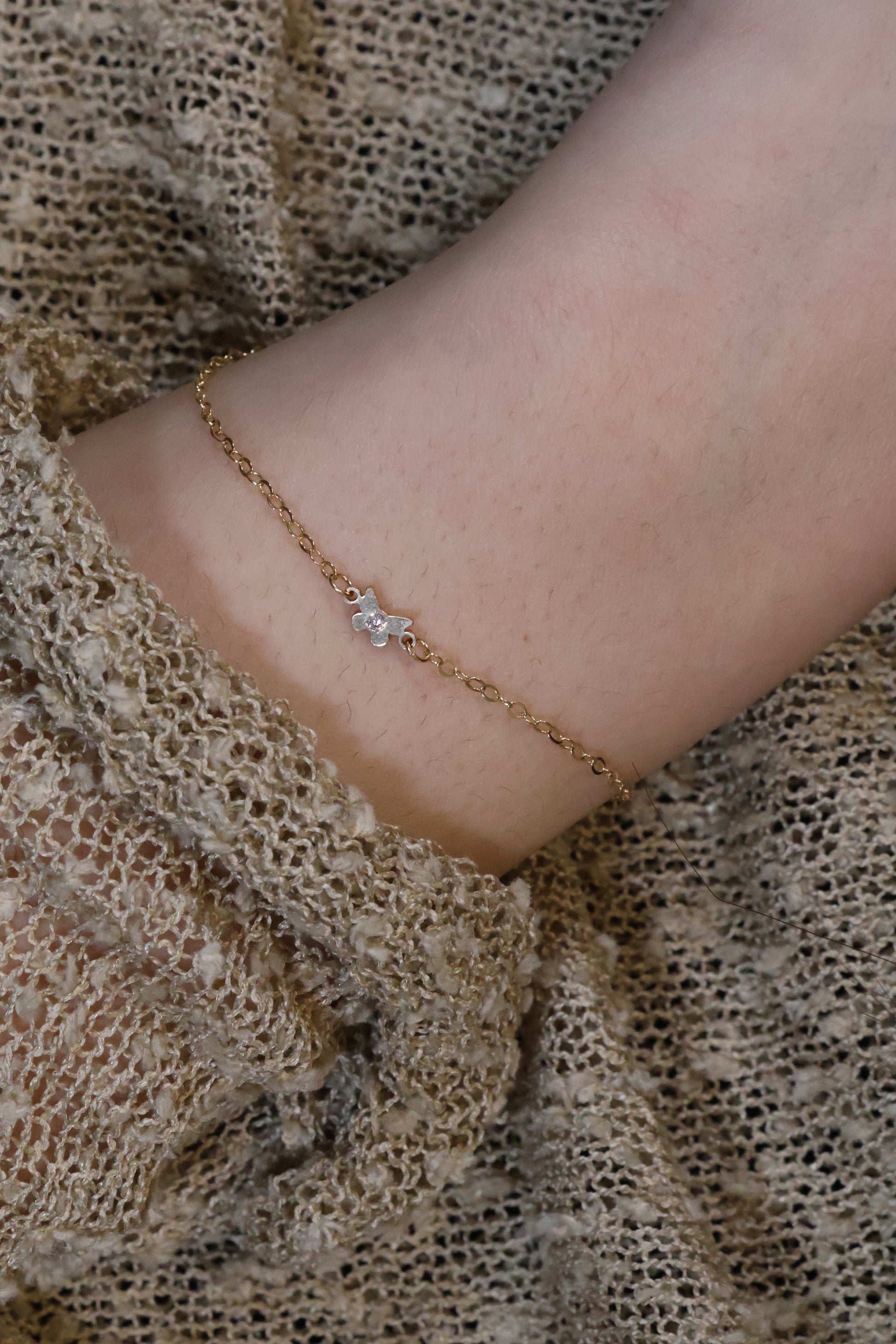 Filigrane Armkette mit einem eleganten Schmetterling Verbinder – ein Symbol für Leichtigkeit, Wandel und Neubeginn.