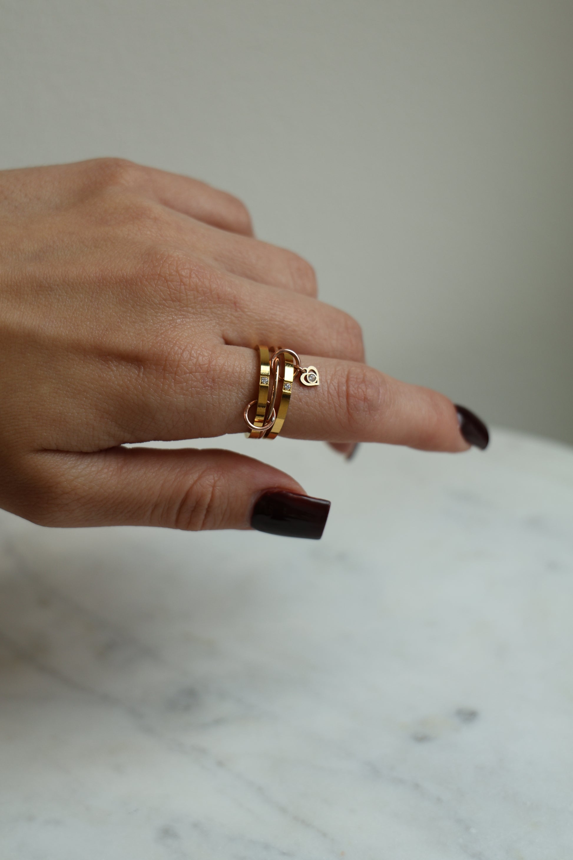 Connected Ring Gold & Rosegold mit Herz Anhänger